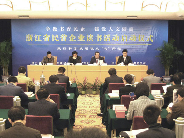 2010年4月22日,國圖總公司和浙江省工商局、浙江省民營企業(yè)發(fā)展聯(lián)合會在杭州舉行浙江省民營企業(yè)讀書活動啟動儀式。浙江省委副書記夏寶龍、總公司副總經(jīng)理朱曉捷、浙江省工商局局長鄭宇民等出席,100多名浙江民營企業(yè)家代表參加儀式。