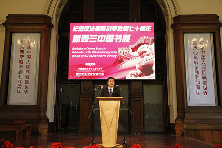 2015年7月24日,集團公司與新中文化藝術交流中心在新西蘭奧克蘭聯(lián)合舉辦紀念世界反法西斯勝利七十周年新西蘭中國書展。國家新聞出版廣電總局副局長孫壽山、中國駐奧克蘭總領事牛清報、新西蘭華人議員楊健、新西蘭都會博物館館長任杰、新中文化藝術聯(lián)合會會長郭宏等出席開幕儀式,并為活動剪彩。中國駐奧克蘭總領館代表、新西蘭政府代表及新中兩國出版商協(xié)會代表、媒體記者等參加了開幕儀式。